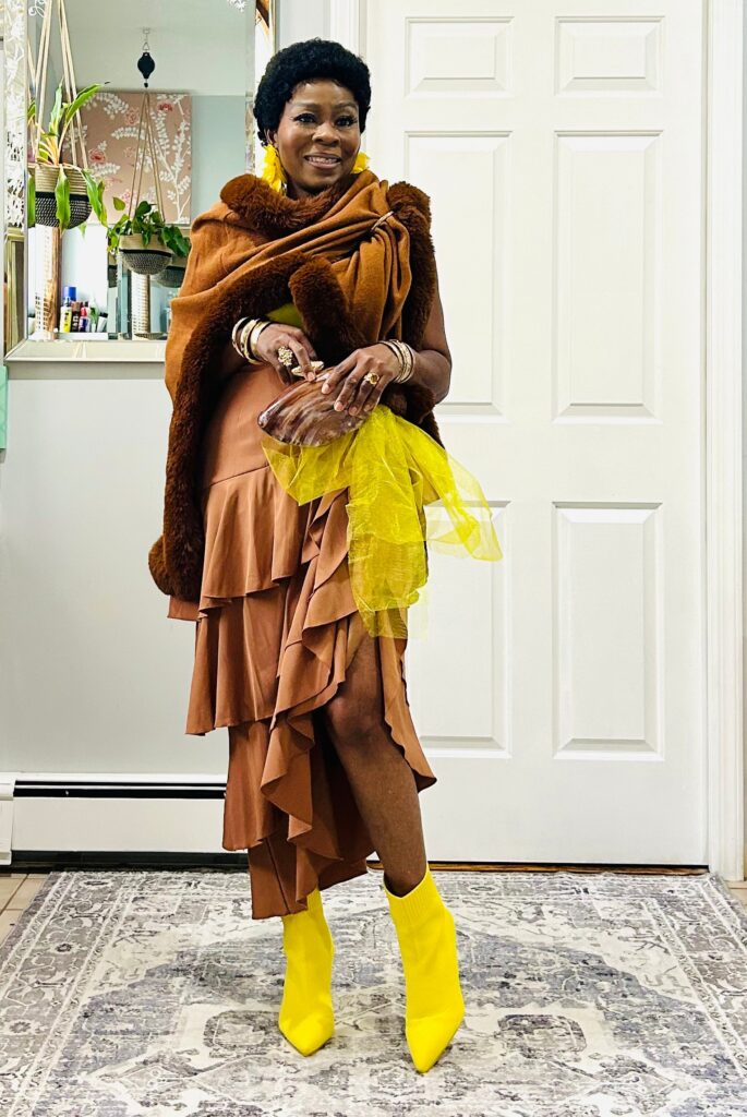 Over time, she realized that her real excitement came from creating, styling, and experimenting with personal expression. The tools changed — from formulas and equipment to fabrics and silhouettes — but her mindset stayed the same. She brought her discipline from the lab into her creative work, giving her designs a clean, structured feel without losing their edge or personality.